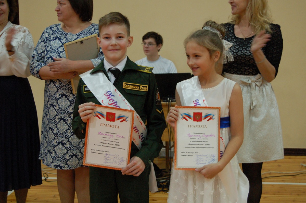 Во все времена кадетские балы отличал дух соревнования. Особо почётно было быть признанным «первым номером» в танцах. Королём и Королевой первого кадетского бала школы посёлка Марковский были избраны учащиеся 5«А» класса - Егор Коряжмин и Елизавета Кузькина. Эта прекрасная юная пара, по словам жюри, обладала и чувством ритма, и чувством пространства, и энергетикой улыбки. Ребята очень органично смотрелись в танце, показывая пример деликатной сдержанности и непринуждённой раскрепощённости одновременно. Наградами были отмечены все танцевальные команды. На память о первом в жизни Марковской школы бале каждый кадетский класс получил почётные грамоты и дипломы.