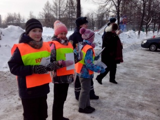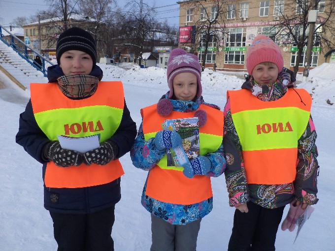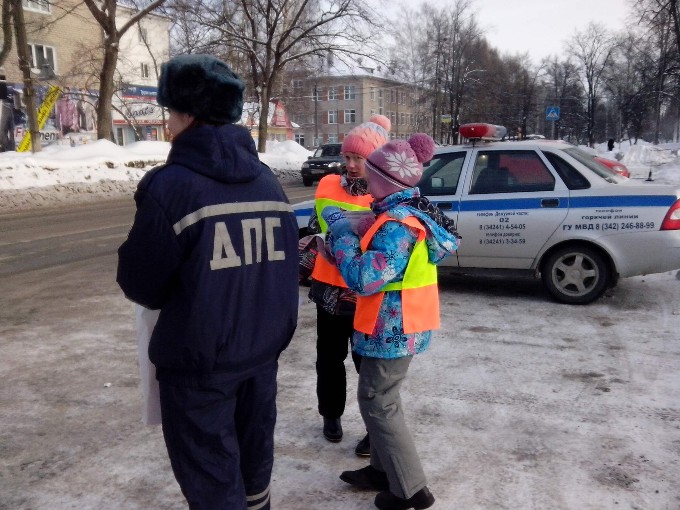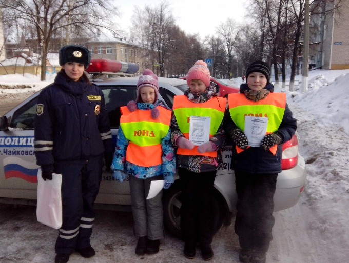 23 февраля сотрудники ГИБДД поздравляли чайковских автомобилистов вместе с юными инспекторами дорожного движения. Несмотря на ощутимый мороз, на рейд вместе с взрослыми вышли трое юных воспитанников ЦДЮТТ «Ютекс» – Лиза, Настя и Александр. Все трое – ученики 12 школы г.Чайковский.