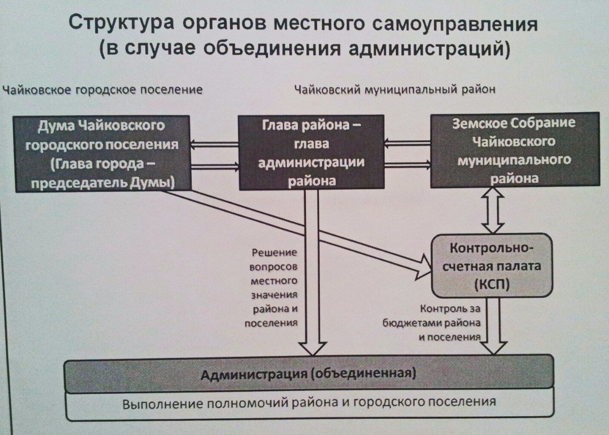 Пока две администрации пытаются найти общий язык, в силу вступили новые законодательные нормы и теперь объединение возможно без проведения референдума. В Уставах Чайковского муниципального района и городского поселения четко прописано, что существует возможность полной или частичной передачи полномочий по решению вопросов местного значения за счет межбюджетных трансфертов. Соответствующее решение принимает представительный орган, то есть Земское Собрание Чайковского муниципального района или Чайковская Городская дума. Подробнее об изменениях, внесенных в Уставы, мы писали в материале «Новые правила жизни города и района».