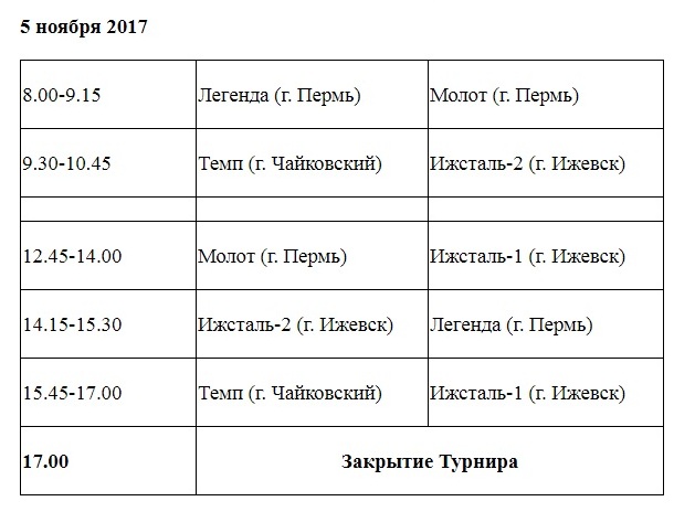 Юные хоккеисты из команд «Ижсталь-1» (Ижевск), «Ижсталь-2» (Ижевск), «Легенда» (Пермь), «Молот» (Пермь) и чайковская команда «Темп» определят сильнейших в ледовых сражениях между собой.