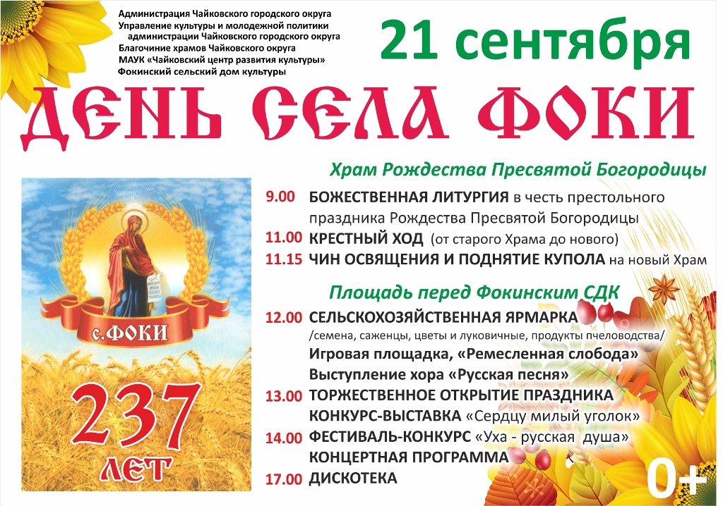 В предстоящую субботу, 21 сентября, в день Рождества Пресвятой Богородицы, в селе Фоки (ранее носившее название Богородское) пройдёт ежегодное событие - День села.