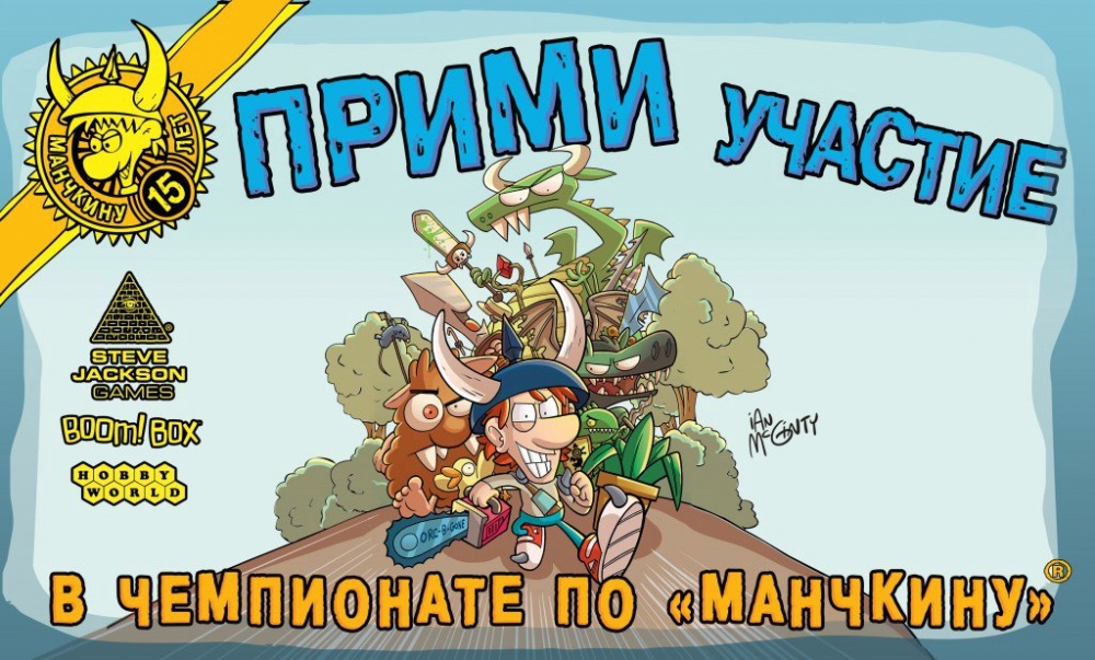 «Манчкин» – одна из самых популярных современных настольных игр в мире – в этом году отмечает свое 15-летие. В честь этого события издательство «Hobby World» созывает всех любителей сокровищ и неприятностей России и ближнего зарубежья на открытый чемпионат (участие бесплатно)!