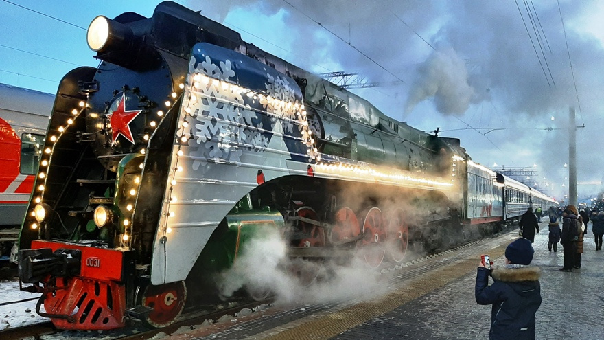 Сказочный состав выехал из Великого Устюга 5 декабря. В пути он пробудет 41 день, проехав в общей сложности 13 тыс. км. Маршрут проходит через 36 городов, расположенных в 31 регионе России.
