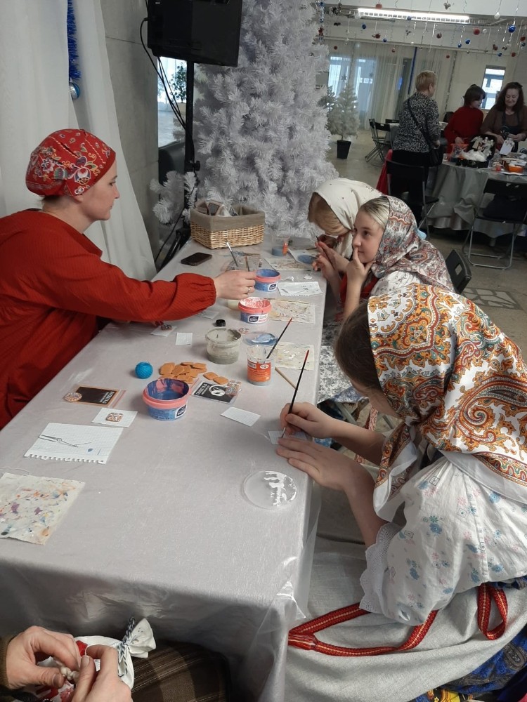 Чайковские мастера провели мастер-класс для юных фольклористов. С большим удовольствием гости расписывали глиняные обережки – амулеты «На удачу». Оттенки синего, голубого, белого цветов традиционного рисунка южного Прикамья переплелись в изделиях юных мастеров. Теперь уж точно повезет!