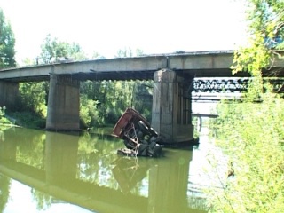 Во время переправы через реку Иринь с моста в водоём упал грузовой автомобиль.