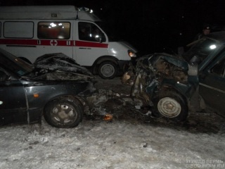 Около полуночи на 51-м километре трассы автомобиль ВАЗ-21081, который двигался со стороны Перми, выехал на встречную полосу движения и столкнулся в «Камазом».