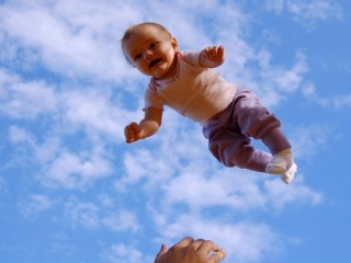 Мужчина играл с ребенком, подкидывая ее вверх.