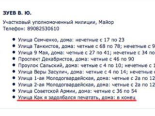 Заполняя вручную на сайте адреса подшефных домов, пермский участковый честно сознался: «как я задолбался печатать, дома: в конец», - написал он.