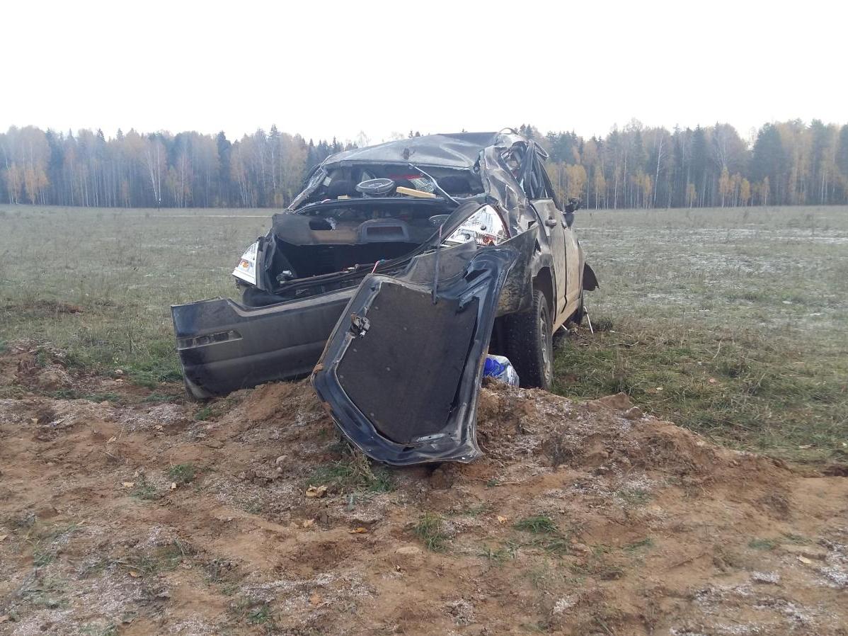 В Чайковском районе 25-летний водитель опрокинул Ниссан в кювет