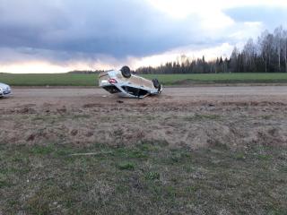 На трассе «Воткинск-Чайковский» Тойота улетела в кювет и опрокинулась