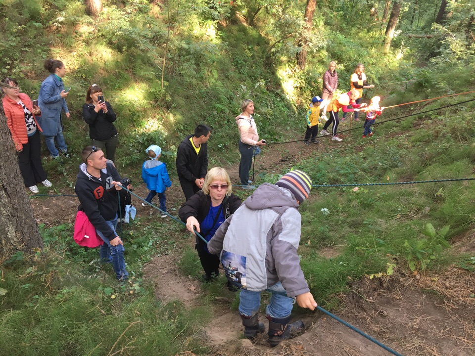 Главным испытанием для ребят стала туристическая полоса препятствий; шестилетним путешественникам пришлось преодолевать звериную тропу, проходить по канатному мосту, скакать по болоту с кочками, спускаться в овраги, искать лекарственные растения и выполнять массу других интересных заданий.