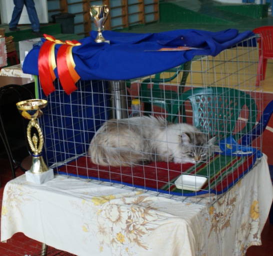 Гостей в зале всё это время было достаточно. Представители элитных кошачьих пород спали в вольерах, развалившись на полу в непринужденных позах, «голые» сфинксы были нежно укутаны в плюшевые пледы.