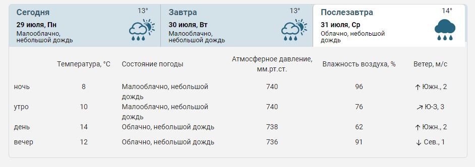 По данным ГИС-центра ПГНИУ, в понедельник столбик термометра не поднимется выше +14°С, но самым холодным днём станет вторник, 30 июля. Ночью температура в некоторых районах края опуститься до +8°С, а днём поднимется не выше +12°С.