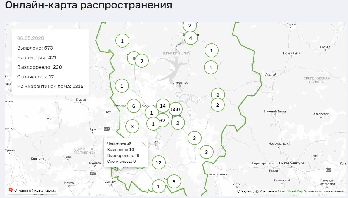 На 6 мая в Чайковском новых случаев заражения коронавирусом не выявлено, то есть по-прежнему у нас остаётся десять подтверждённых случаев заболевания COVID-19, восемь человек – выздоровели.
