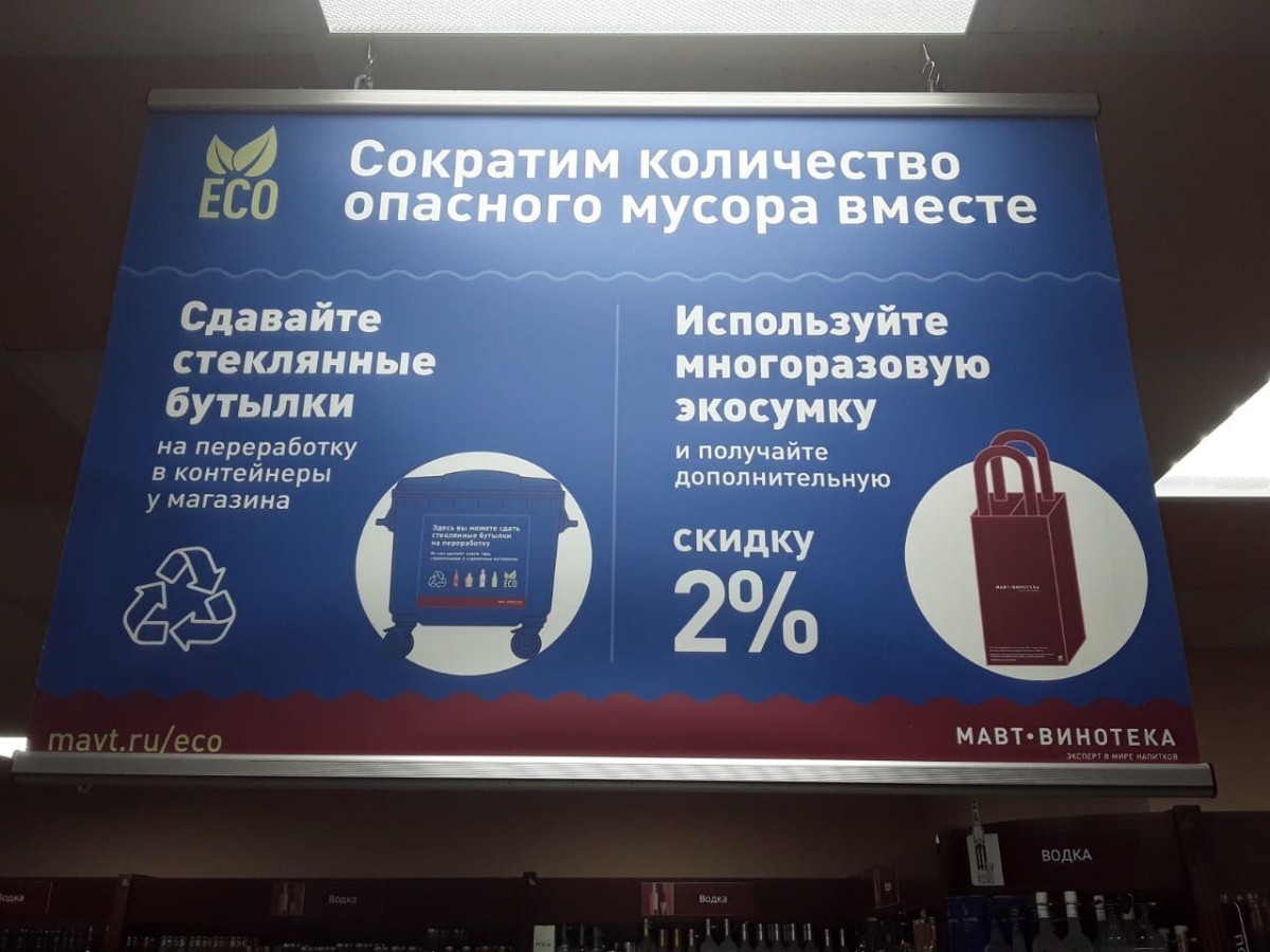 В Челябинске рядом с двумя магазинами «МАВТ Винотека 18+» появились контейнеры для сбора бутылок. Информация об этом появилась на официальном сайте компании и на личной странице челябинского экозащитника Дмитрия Закарлюкина в соцсети «ВКонтакте».