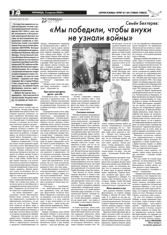 Елена Иванцова была заявлена в номинации «Энергия для Победы» с материалом «Мы победили, чтобы внуки не узнали войны».