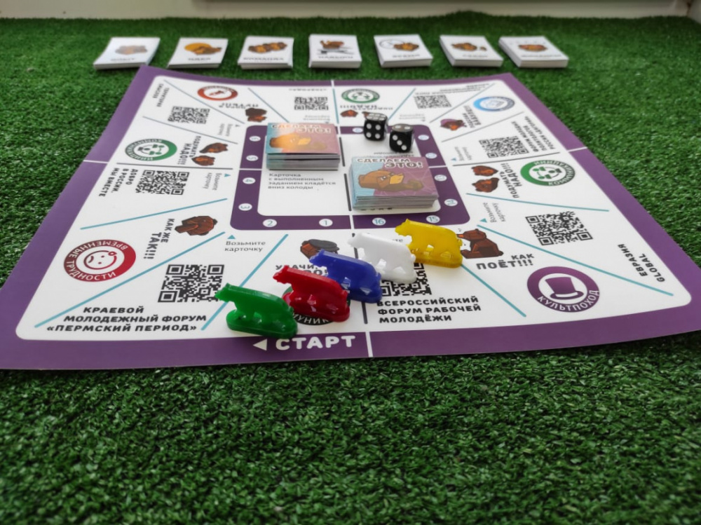 Она познакомит играющих с молодёжными мероприятиями краевого и федерального уровня. На игровом поле есть секторы с ежегодными всероссийским форумами «Таврида», «Территория смыслов», «Дигория», «Евразия Global» и краевой форум «Пермский период», с которого игроки начнут партию.