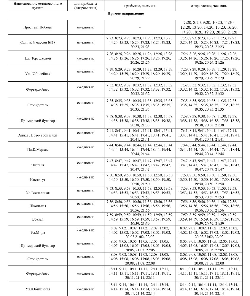 Автобус будет отправляться с остановки Проспект Победы ежедневно в 7:20, последний рейс - 21:20.