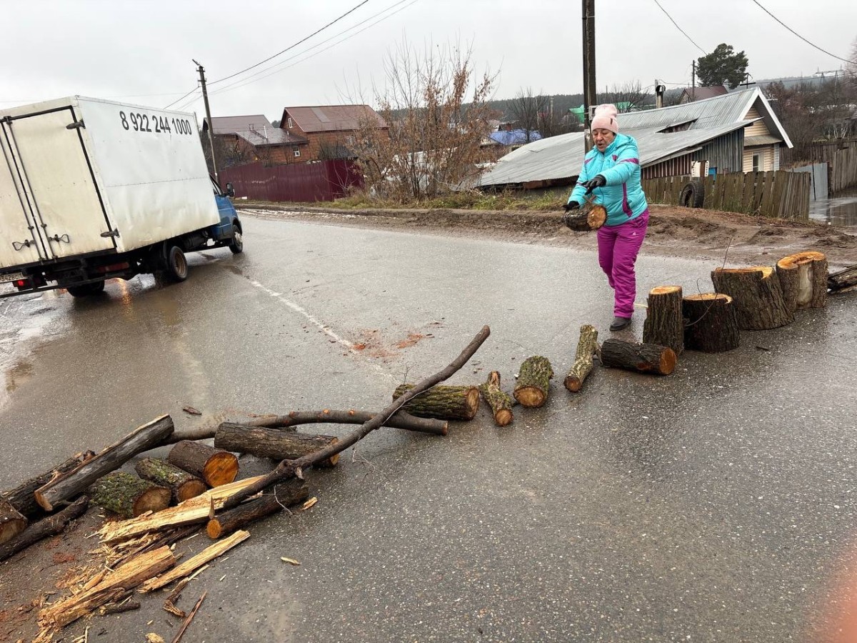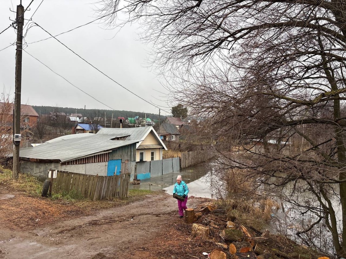 Но, видимо, не все жители, которые пострадали от подтопления, оказались в курсе действий властей. Так женщина, у которой затопило вход в дом, не дождавшись действий от властей, самовольно начала перекрывать дорогу чурками.