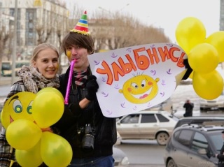 Мероприятие состоится 30 марта в 18:00 на ул. Пермская (Арбат/пешеходная улица/Кирова). Участникам при себе помимо свой улыбки надо захватить атрибутику желтого смайлика. Одежда тоже желательно должна быть желтого цвета. Приветствуются желтые шарики, плакаты с улыбками.