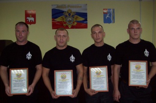 Из рук исполняющего обязанности начальника полиции, подполковника Бекреева А.А. благодарственные грамоты получили: Баяндин Эдуард, Калабин Александр, Новопашин Никита и Крутиков Сергей.