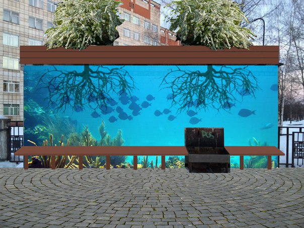 По замыслу координаторов проекта, кроме покраски стен здания, на его крыше предполагается устроить «сад», разместив два скрытых вазона с кустарниками. Вдоль фасада здания родника, на металлический каркас, будет установлена скамья для канистр. Само же здание будет окрашено в виде аквариума, населённого морскими обитателями.