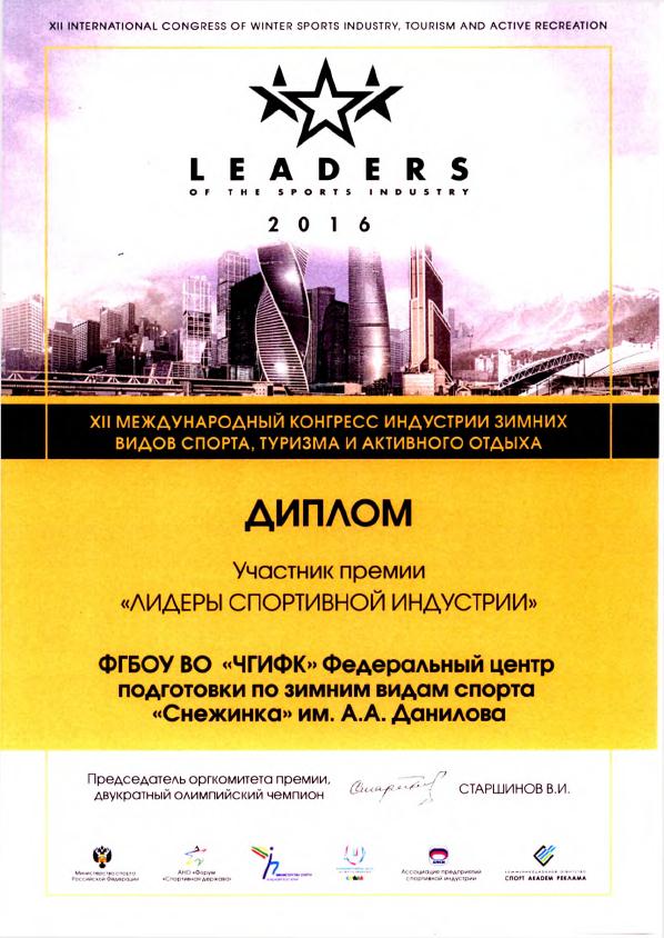 Федеральный центр подготовки по зимним видам спорта «Снежинка» имени А.А. Данилова стал обладателем диплома участника премии «Лидеры спортивной индустрии». Ректор Чайковского института физкультуры Фанави Зекрин принял участие в конгрессе на пленарном заседании научно-практической конференции «Актуальные вопросы и перспективы развития системы подготовки спортсменов по зимним видам спорта в преддверии XXIX Всемирной зимней Универсиады 2019 года»; на круглых столах «Создание государственных стандартов для горнолыжной индустрии. Необходимая действительность?» и «Организация школьных уроков физической культуры на основе хоккея»; на малом пленуме спортивно-образовательного форума «Зимние виды спорта: наука, технологии, инновации»; в дискуссии «Создание эффективных механизмов финансирования горнолыжных комплексов».