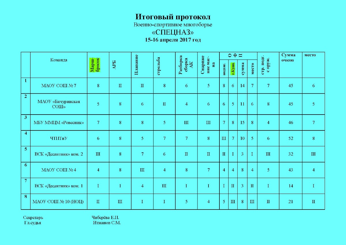 На торжественном построении прошло награждение команд. Третье место по общему количеству баллов заняла команда № 2 клуба «Десантник», вторыми стали ребята из школы № 10 и абсолютными победителями стали юные десантники команды № 1 из клуба «Десантник». Все победители получили грамоты, медали, кубки и ценные призы.